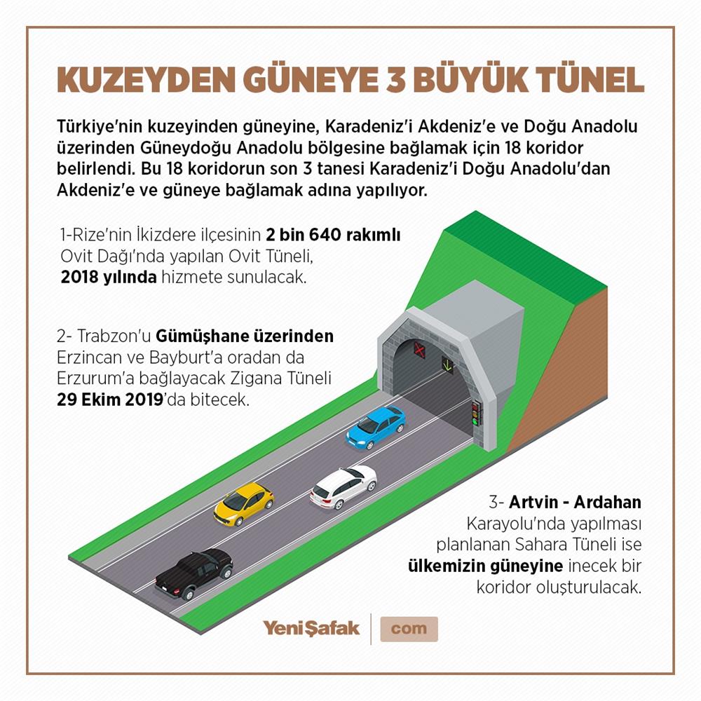 "Ovit Tüneli'nde ışık gördüyü de yaptık, önümüzdeki yıl hizmete sunmuş olacağız. Böylece Rize'yi İspir üzerinden Erzurum'a, oradan da ülkemizin güneyine bağlayacak önemi bir koridoru yapmış oluyoruz. Zigana Tüneli de Trabzon'u Gümüşhane üzerinden Erzincan ve Bayburt'a oradan da Erzurum'a bağlayacak, devamındaki Kop Tüneli çok önemli bir tünel, böylece ikinci bir güzergahı, ikinci bir koridoru tamamlamış olacağız. İnşallah sadece bunlarla yetinmeyeceğiz, ülkemizin diğer alanlarında da bir çok tüneli yine yapacağız ki bahsettiğimiz koridorları tamamlamış olalım."