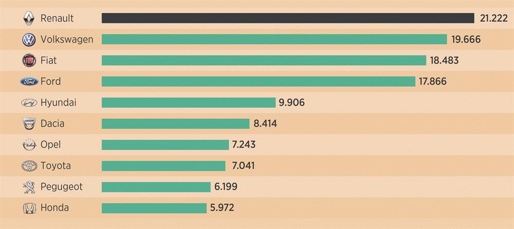 Uzun yıllardır otomotiv satış pazarının lideri olduğu Türkiye'de henüz yatırımı bulunmayan Alman Volkswagen’in bu hegemonyası bitti. 2017'nin ilk çeyreğinde iç pazarın yeni lideri Fransız Renault oldu.