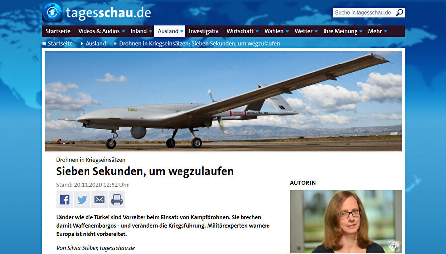 Dünya basınında Türkiye üretimi İHA/SİHA’lara yönelik övgü dolu yazılar yayımlanmaya devam ediyor. Son olarak Alman haber sitesi Tagesschau’da Silvia Stöber tarafından ‘Kaçmak için yedi saniye’ başlıklı bir yazı kaleme alındı.