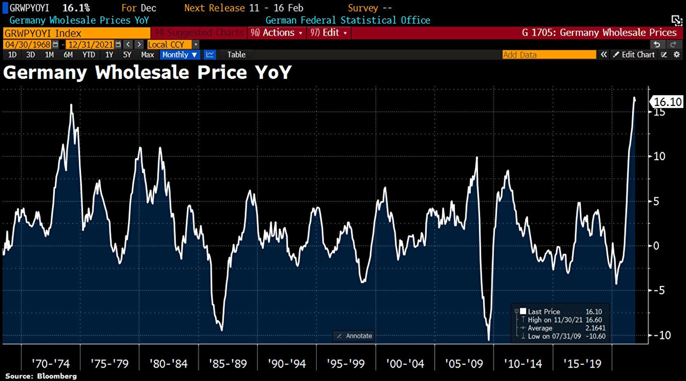 Aralık ayında enflasyonun yaklaşık son 30 yılın zirvesini gördüğü ülkede toptan fiyat enflasyonu yüzde 16,10'luk artış ile son 50 yıllık dönemin rekorunu kırdı.