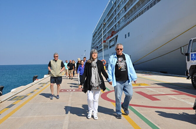 Kruvaziyer turizmin başkenti sayılan Kuşadası, Amerikalı milyonerlerin yolculuk ettiği turist gemisini ağırlıyor.
