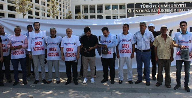 Hak-İş Konfederasyonu’na bağlı Hizmet-İş Sendikası yöneticileri, toplu iş sözleşmesinin (TİS) zamanında imzalanmamasından dolayı Antalya Büyükşehir Belediyesi önünde greve başladı.