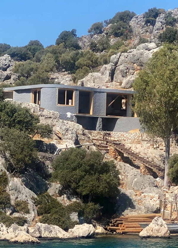 Üçağız Yarımadası'nda tepkilere yol açan villa inşaatı.