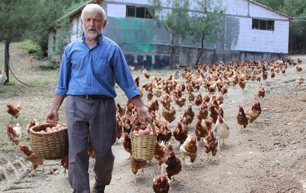 Bursa'da tekstil işinden emekli olduktan sonra organik yumurta işine giren emekli vatandaşın baktığı tavuklar peşinden koşuyor. Çocuğu gibi baktığı tavuklarını tabiî yemlerle besleyen Seyfullah Aydın, 500 tavukla başladığı organik yumurta işinde bugün 2 bin tavuğa ulaştı. Günde yaklaşık bin yumurta elde eden Aydın, organik yumurtaların 30 tanesini 20 liradan satıyor.