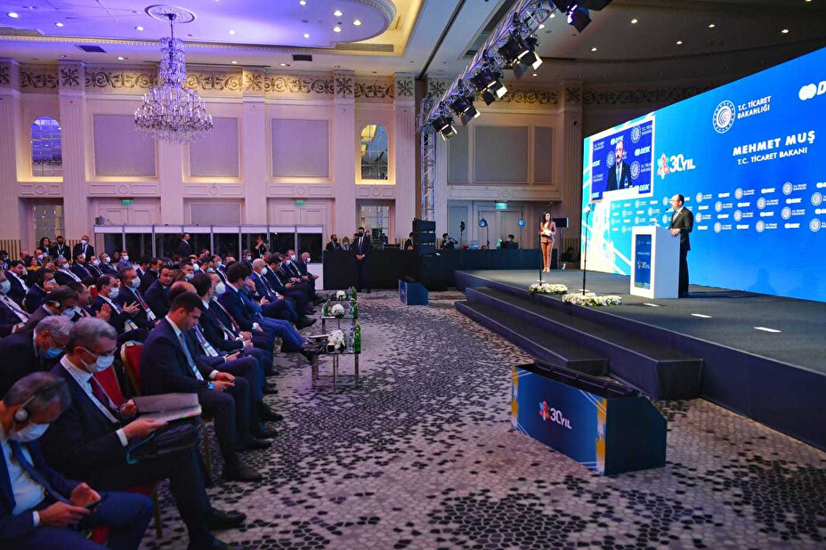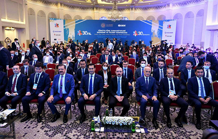 Programda bir konuşma yapan Ticaret Bakanı Mehmet Muş, ”Ekonomilerimiz üzerinde döviz baskısını azaltmak için ortak geleceğimizde milli paraların payını artırmalıyız. Hepinizin bildiği üzere, Türkiye ve Türk Cumhuriyetleri arasında kadim tarihi ve kültürel bağlara dayanan çok güçlü ilişkiler bulunmaktadır. Bizlerin amacı, her alanda sahip olduğumuz bu köklü ilişkilerin ekonomik ve ticari alanda daha da derinleştirilmesidir. İşte mevcut ilişkilerimizin değerlendirileceği bu konferansın; Türk dünyasının geleceğine yönelik ortak bir vizyon belirlenmesine katkı sağlamasını umuyorum. 1991 yılı, Türk Cumhuriyetlerinin bağımsızlıklarını yeniden kazanarak, dünya devletler sahnesinde tekrar yer almaları nedeniyle bir dönüm noktası olmuştur. Bağımsızlığın hemen ardından milli kimlik ve devlet kurumlarının inşa sürecini başarıyla tamamlayan Türk Cumhuriyetleri; güçlü bir şekilde kültürel, toplumsal ve ekonomik yapılarını tesis etmişlerdir. Nitekim Türkiye, bağımsız Türk Cumhuriyetlerinin birer birer tarih sahnesine çıkışlarını büyük bir heyecanla karşılamış; bu suretle kardeş ülkelerin bağımsızlıklarını ilk tanıyan ülke olmuştur. Bütün bu süreçlerde kardeşlerini asla yalnız bırakmayan Türkiye, daha güçlü devlet ve ülke olma mücadelesinde tüm olanaklarıyla yeni Türk Cumhuriyetlerinin yanında yer almıştır. Kardeşlerimizin bağımsızlığı sonrası Türkiye olarak temennimiz; yeni kurulan kardeş devletlerin bölge ve dünya ile bütünleşmesi ve ülkemizle her alanda güçlü ilişkiler tesis etmeleri olmuştur. Kuşkusuz ortak dil, din, tarih, bellek ve kültüre sahip olmamız, ikili ve bölgesel ilişkilerin güçlenmesine zemin hazırlamıştır. Türk Cumhuriyetleri ile ilişkilerin güçlendirilmesi, Türkiye’nin daimi vizyonu olmuştur” ifadelerini kullandı.