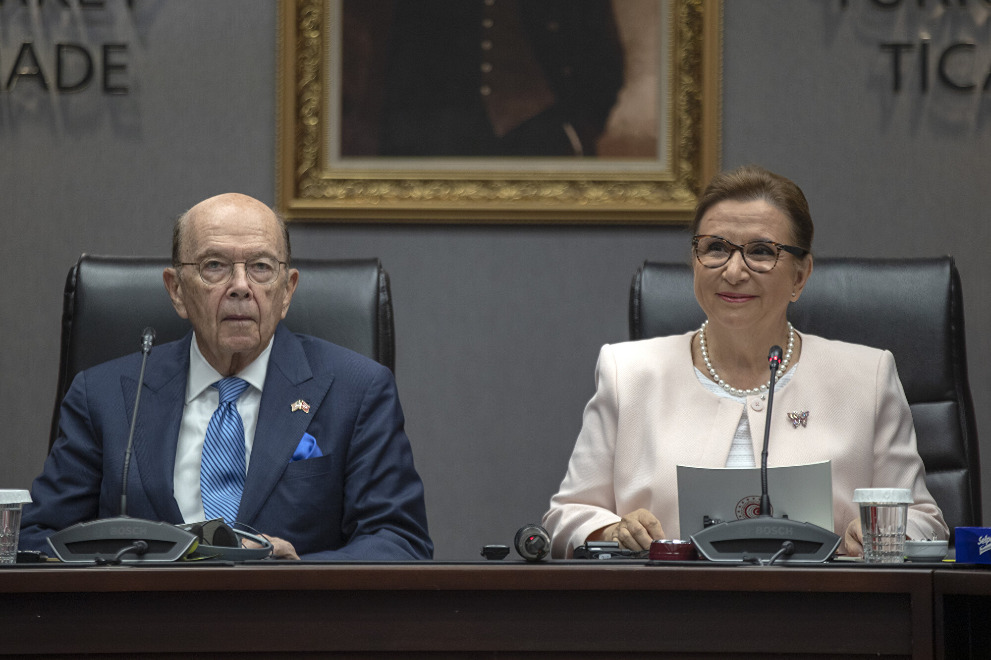 ABD ile ticari ilişkiler hakkında değerlendirmelerde bulunan Pekcan, "Öncelikle 100 milyar dolarlık ticaret hacmi bir motivasyon oldu bizim ilişkilerimiz için. Nisan ayında ilk kez bir araya geldik. ABD Ticaret Bakanı Ross'la 7-8 görüşmemiz var. e-Mail, telefon yüz yüze görüşmelerimiz. Sektörlerin içinde bulunduğu çalışma grupları kurduk. Strateji planı oluşturduk. TİM ve birlik başkanları başta olmak üzere hepsiyle çalışmalar yaptık. Yol haritalarımızı belirledik. İzmir fuarı öncesinde ve sonrasında da görüştük. Sonrasında Ross'la bir araya geldik. Ben detaycıyımdır, Ross da çok detaycı." ifadelerini kullandı.
