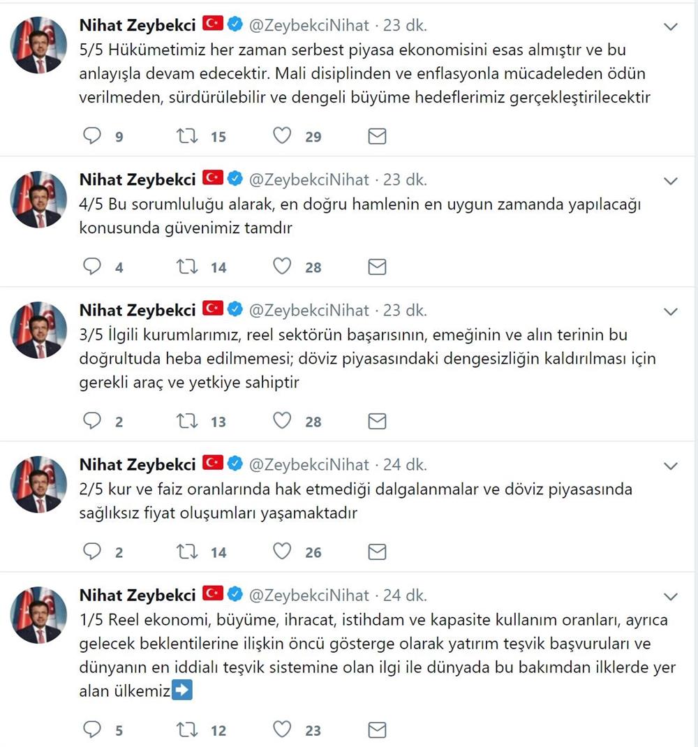 Son günlerde spekülatif desteklerle döviz kurlarında yaşanan olağanüstü artışlar sonrasında Ekonomi Bakanı Nihat Zeybekçi'den piyasalara mesaj niteliğinde bir açıklama geldi.