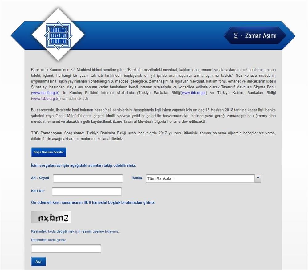 - Zaman aşımına uğrayan hesabınızın olup olamdığını ( TBB'nin her yıl Şubat ayında aktif hale getirdiği ) internet sitesinden öğrenebilirsiniz.