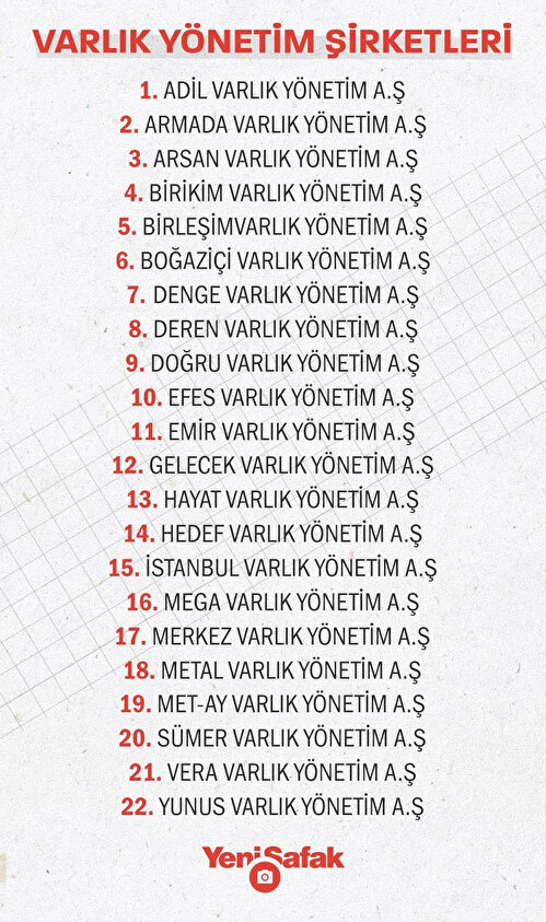 - Varlık yönetim şirketleri, başta bankalar olmak üzere finans kurumlarının tahsili gecikmiş alacaklarını devir alarak yeniden yapılandırıp, tahsil etmeye çalışan şirketler olarak ifade ediliyor.