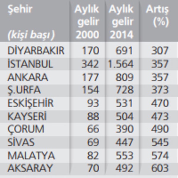 Aynı dönemde İstanbul’da ev kirası yüzde 357 artmış. Yani reel olarak düşmüş. Böylece kazancı ile kendi bulunduğu ilden değil İstanbul’dan ev, işyeri satın alıp kira geliri elde etmeye çalışan Anadolu esnafı ve işadamının aslında zararda olduğu ortaya çıkıyor. Başkent Ankara’da da aynı durum geçerli. Ankara’da 14 yılda kira artışı İstanbul ile aynı olmuş. İki büyükşehirden daha kötü kira artışı görülen şehir sadece terör faaliyetleri dolayısıyla güvenlik zaafiyeti oluşan Diyarbakır. Bu ilde kira yüzde 307 artabilmiş.
