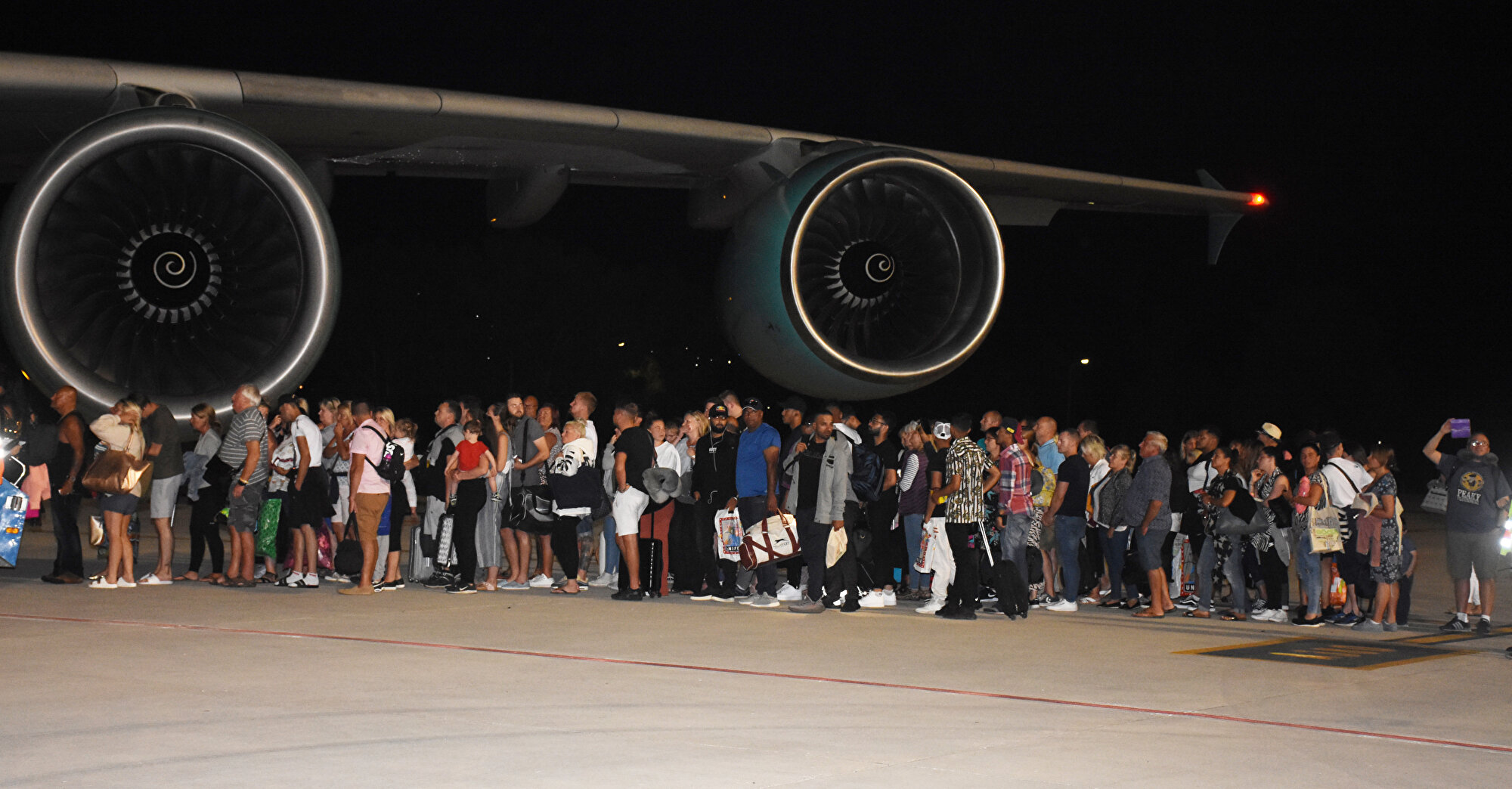 Burada İngiltere'den gelen yetkililer tarafından gerekli bilgilendirmeler yapılan turistler, daha sonra uçuş işlemlerini gerçekleştiriyor. Pasaport işlemleri tamamlananlar ise tahsis edilen uçaklara yönlendiriliyor.