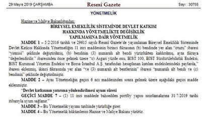 - Yapılan değişiklikle BES'teki yaklaşık 12 milyarlık devlet katkısının 1.2 milyarının Borsa İstanbul'a aktarılması bekleniyor.