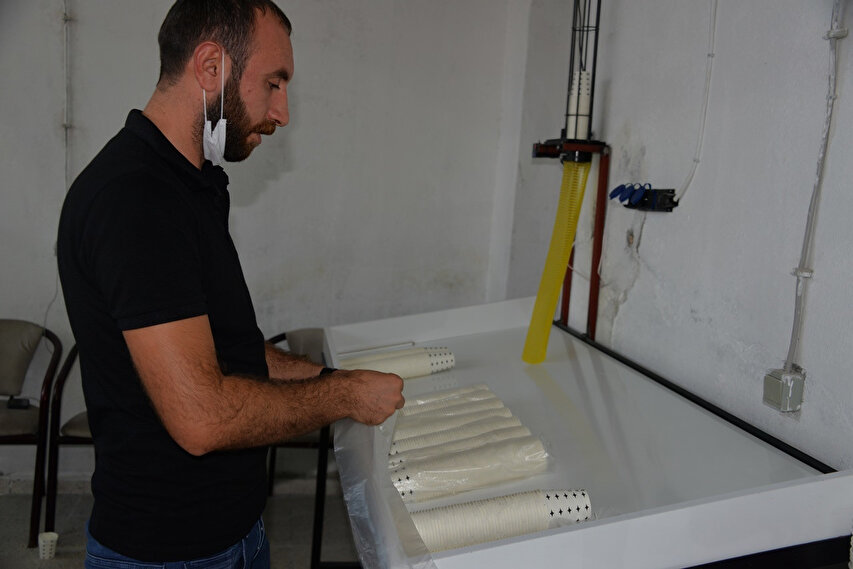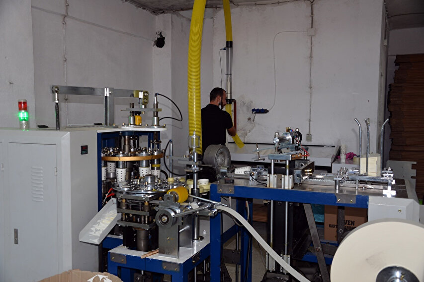 Bingöl'ün Genç ilçesinde TIR şoförlüğü yapan Sinan Güven (33), koronavirüsü fırsata çevirdi. Güven, koronavirüs nedeniyle kullanımı artan kağıt bardak için KOSGEB'den 150 bin TL destek alarak üretime başladı. Şoförlüğü bırakan Güven 3 işçiyle günde 150 bine yakın bardak üretiyor.