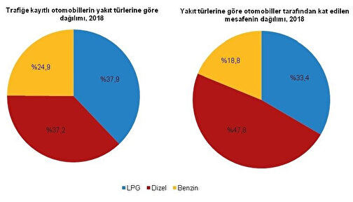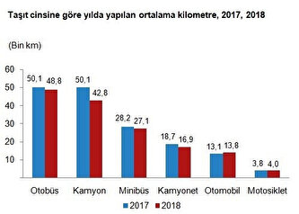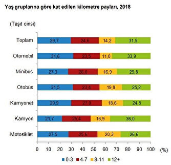 Türkiye İstatistik Kurumu'nun (TÜİK) verilerine göre, toplam taşıt-km'nin yüzde 55.7'si otomobiller, yüzde 20.6'sı kamyonetler, yüzde 11.8'i kamyonlar, yüzde 4.3'ü minibüsler, yüzde 4.1'i motosikletler ve yüzde 3.5'i otobüsler tarafından yapıldı.