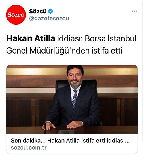 Borsa İstanbul'dan yapılan açıklamada da "Genel Müdürümüz Sayın Hakan Atilla ile alakalı Twitter üzerinden istifa ettiğine dair yayılmaya çalışılan iddialar gerçeği yansıtmamaktadır" denildi.