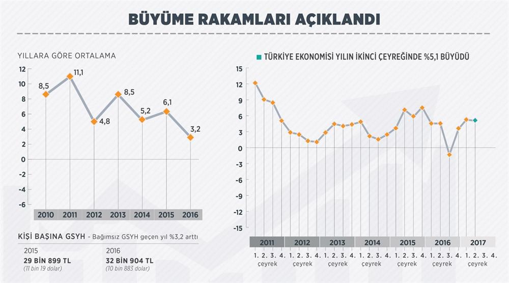 - Türkiye ekonomisinde 2. çeyrek büyüme oranı yüzde 5,1 oldu.