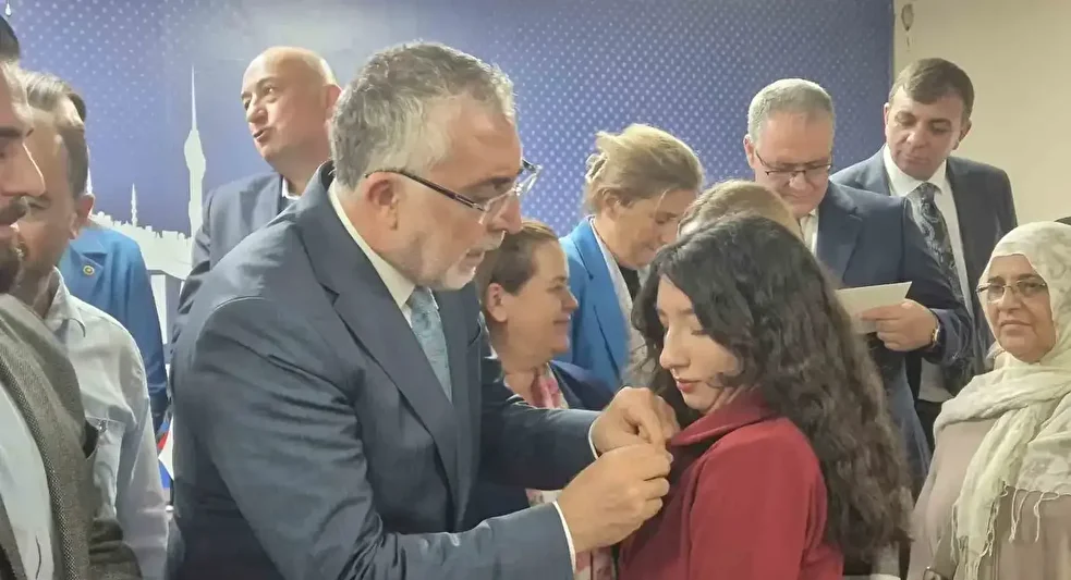 Bakan Işıkhan, daha sonra partiye yeni üye olan vatandaşlara rozet taktı.