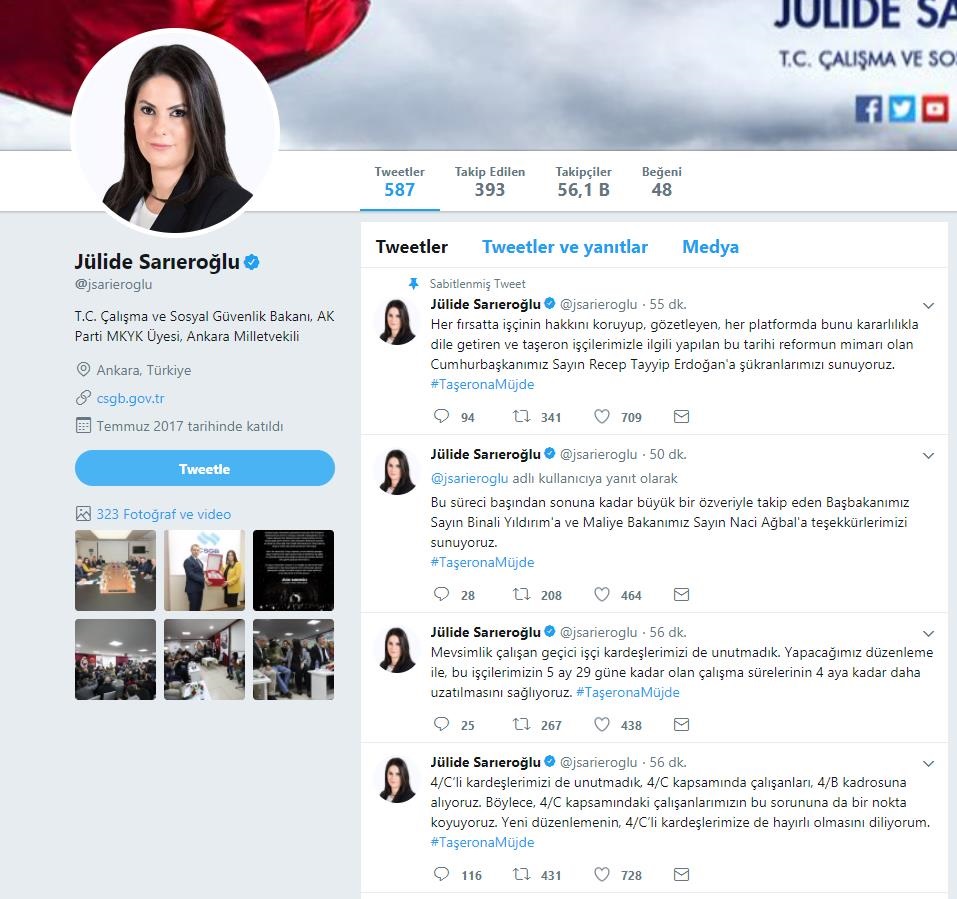 Çalışma ve Sosyal Güvenlik Bakanı Jülide Sarıeroğlu taşeron işçilerle ilgili olarak AK Parti Grup toplantısında Cumhurbaşkanı Recep Tayyip Erdoğan'ın hemen ardından taşeron işçi düzenlemesiyle ilgili açıklama yaptı.
