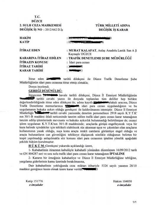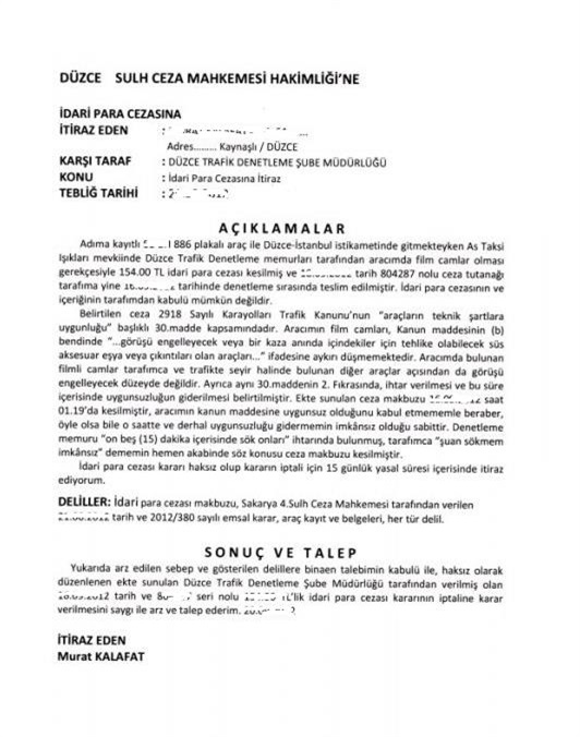 Salgut, "Dışarıdan aracın içinin görünüp görünmemesi değil, cam filmi nedeniyle sürücünün dışarıyı göremediğine bakılmalı. Yargıtay'ın görüşü engellenmeyen cam filmi için kesilen cezanın kaldırılmasıyla ilgili kararı var" diye konuştu.