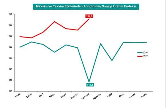 Sanayi üretim verisinin ekonomiye yansımasını pozitif olarak okuduğunu ifade eden Köksal, "Geçtiğimiz yıl yaşanan darbe girişimin etkilerini silmek ve ekonomiyi yeniden yüzde 5 büyüme patikasına oturtmak için oluşturulan teşvikler, sanayi üretim rakamlarına da paralel olarak yansıyor" dedi.