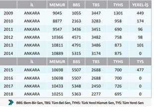 Aşağıda son 10 yılda farklı sendikaların üye sayıları yer alıyor.