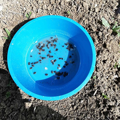 Kütahya’nın Pazarlar ilçesinde çiftçiler, meyve ağaçlarına çiçek döneminde büyük zarar veren bakla zınnı böceklerini yok etmek için ağaçların altına mavi leğen koyarak verilen zararı azaltıyor.