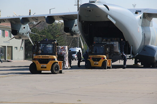 Geçtiğimiz hafta da Cumhurbaşkanı Erdoğan’ın talimatıyla Sağlık Bakanlığı tarafından hazırlanan maske, tulum ve tanı kitinden oluşan yardım malzemeleri Kuzey Makedonya, Karadağ, Sırbistan, Bosna Hersek ve Kosova’ya gönderildi. Daha önce de Türkiye’den İspanya ve İtalya’ya da kargo uçaklarıyla tıbbi malzeme yardımı gönderilmişti.