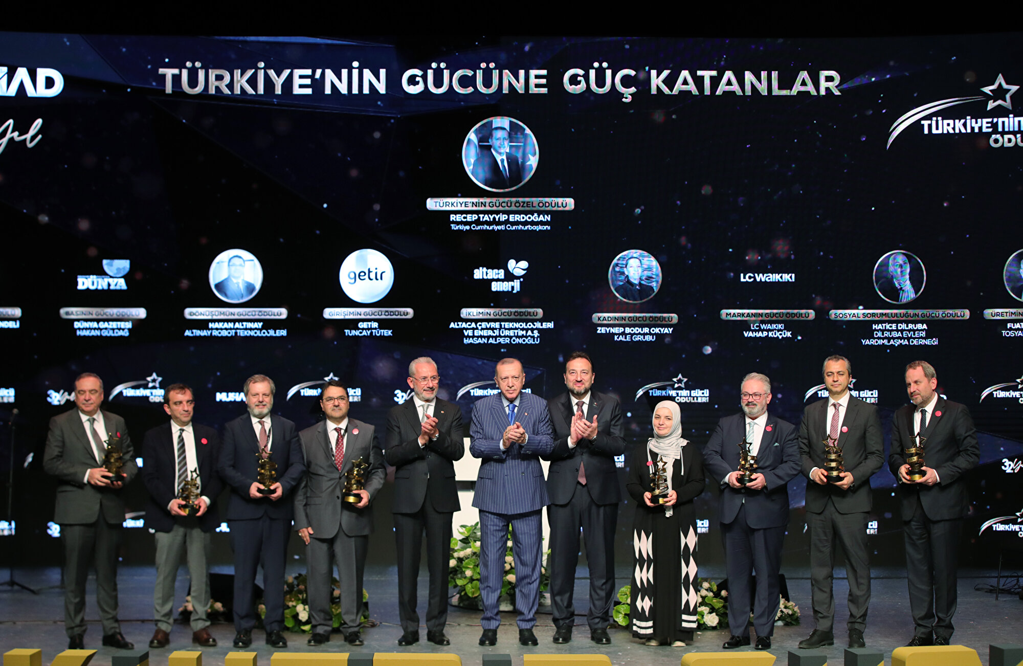 "MÜSİAD yönetimine şükranlarımı sunuyorum. Türkiye'nin Gücü Özel Ödülü'nü köklü dayanışmamızın, dava arkadaşlığımızın bir nişanesi olarak ömrüm boyunca iftiharla taşıyacağım. Hakkı verilen her başarının hayatta daha büyük başarıların önünü açtığını yakinen biliyoruz. Ülkemizin üretimine, ihracatına katkı sağlayan cesur isimlerin ödüllendirilmesini anlamlı buluyorum. Esasen bugün ödül tevcih ettiğimiz isimler Türkiye'nin yazdığı başarı hikayesinin kahramanlarından küçük bir örnektir. Vatanımızın dört bir yanında aralarında kadınlarımızın gençlerin olduğu on binlerce insanımız benzer başarılara imza atıyor.