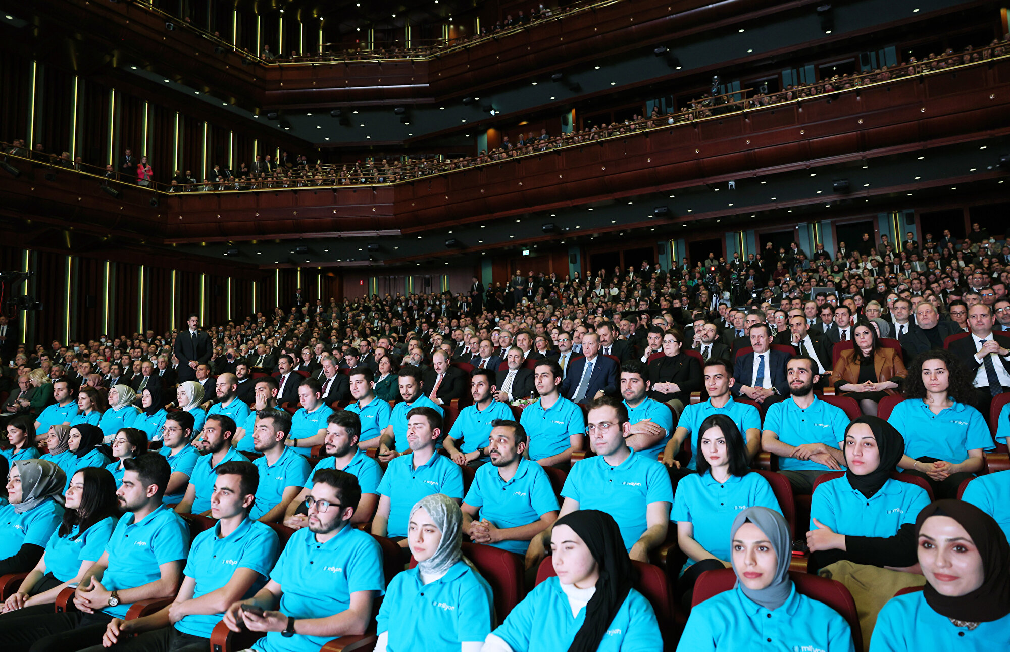 - "İstihdamda, 31 milyonu geçerek tarihimizin en büyük rakamına ulaşmış olmak, en büyük sevinç kaynağımızdır. Sadece son bir yılda 1,5 milyona yakın istihdam sağlamış olmamız, uyguladığımız programın gücüne ve isabetine işaret ediyor. Küresel gelişme ve büyümenin teknoloji ağırlıklı bir istikamete kayması, bizi dijital dönüşüm ve bilgi teknolojileri alanına daha çok eğilmeye yöneltti. Kurumsal yapılardaki ve iş yapma biçimlerindeki değişimi hızla ülkemize uyarlayacak çalışmalar yürütüyoruz. Hiç şüphesiz bu süreçteki en önemli avantajımız, beşeri sermaye gücümüzün zenginliğidir, yani sizlersiniz.