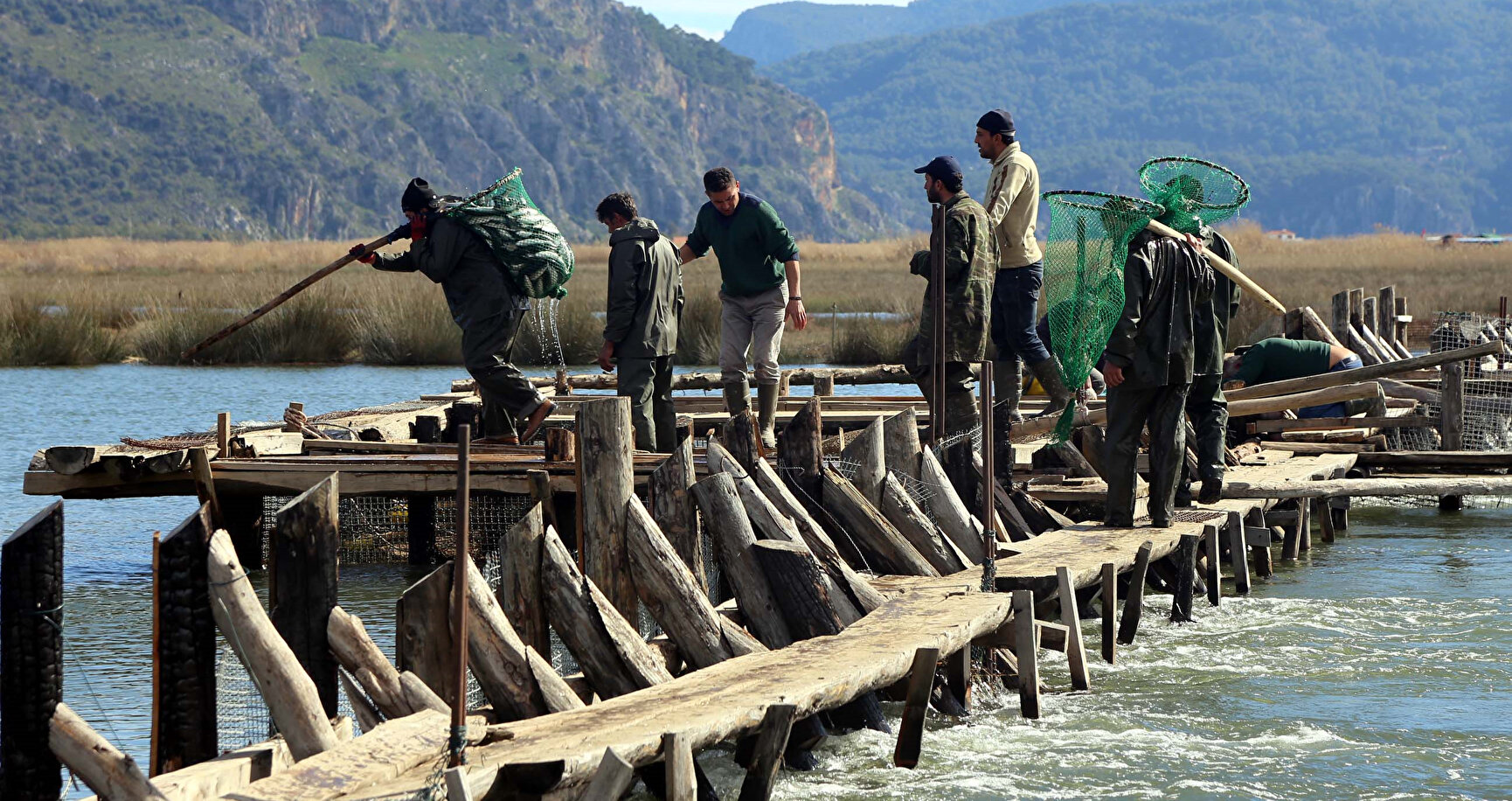 2 bin 500 yıllık kaya mezarları, caretta carettaları ve İztuzu Plajı'nı görmek için her yıl binlerce insanın ziyaret ettiği Dalyan Kanalında üretilen kefal, Dalyan Su Ürünleri Kooperatifinde çalışan balıkçıların "süzek" adı verilen ağlarla toplanarak tesislere getiriliyor.
