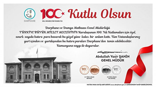 Darphane ve Damga Matbaası Genel Müdürlüğü TBMM’nin Açılışının 100. Yılı Kutlamaları için özel, sınırlı sayıda hatıra para basarak bu güzel güne kalıcı bir anlam kattı.