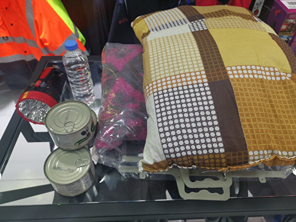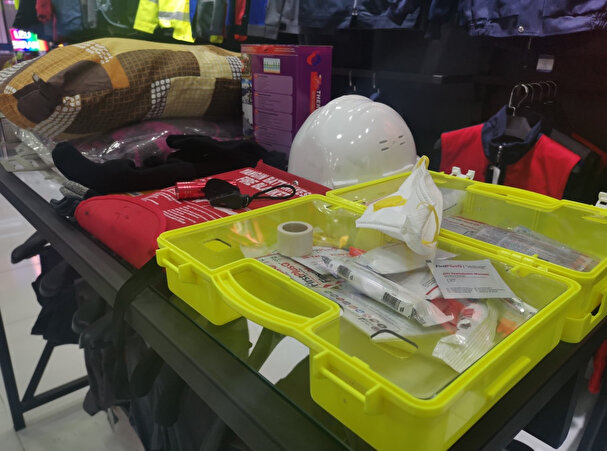 İş güvenliği malzemeleri satan Burak Akay ise, "İlk önce başlı başına bir ilkyardım setinin olması gerekiyor. En çok tozdan etkileneceğimiz için toz maskesinin olması gerekiyor. Yastığımız, battaniyemiz, içliğimiz, eldivenlerimiz, beremiz ve çorabımızın da olması gerekiyor. El fenerimizin muhakkak olması gerekiyor. Tek kullanımlık konservelerimiz, sularımız var. Baret ve yangına karşı korunak sağlamamız için ekstradan yangın battaniyemiz var. Acil durum düdüğümüzün de muhakkak olması gerekiyor.