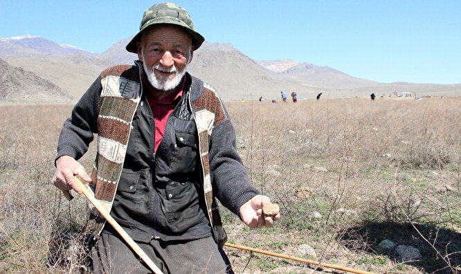 Karaman’da sezonunun başlaması nedeniyle genç yaşlı demeden herkes arazilere akın ederek bastonla dolaman mantarı arıyor.