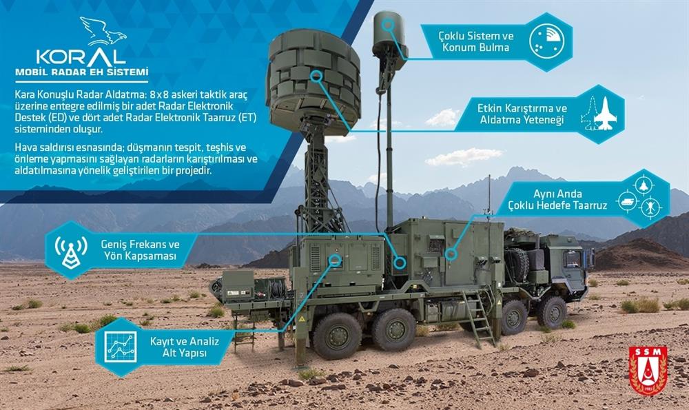 Yerli hava savunma sistemi Koral, Suriye sınır hattına sevk edilerek aktif hale getirilmişti. 100 kilometrenin üzerinde menzile sahip olduğu belirtilen sistemle birlikte Türkiye, düşman kara, deniz ve hava konuşlu radarların karıştırılması noktasında önemli bir özelliğe sahip.