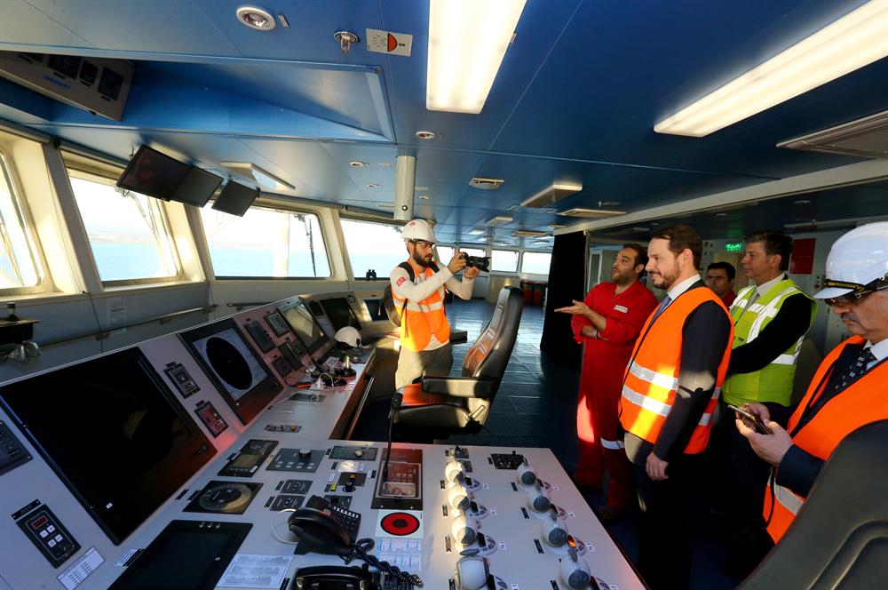 Enerji ve Tabii Kaynaklar Bakanı Berat Albayrak da iki hafta önce TANAP'ın Çanakkale Boğazı denizaltı boru döşeme çalışmalarını yerinde incelemişti.