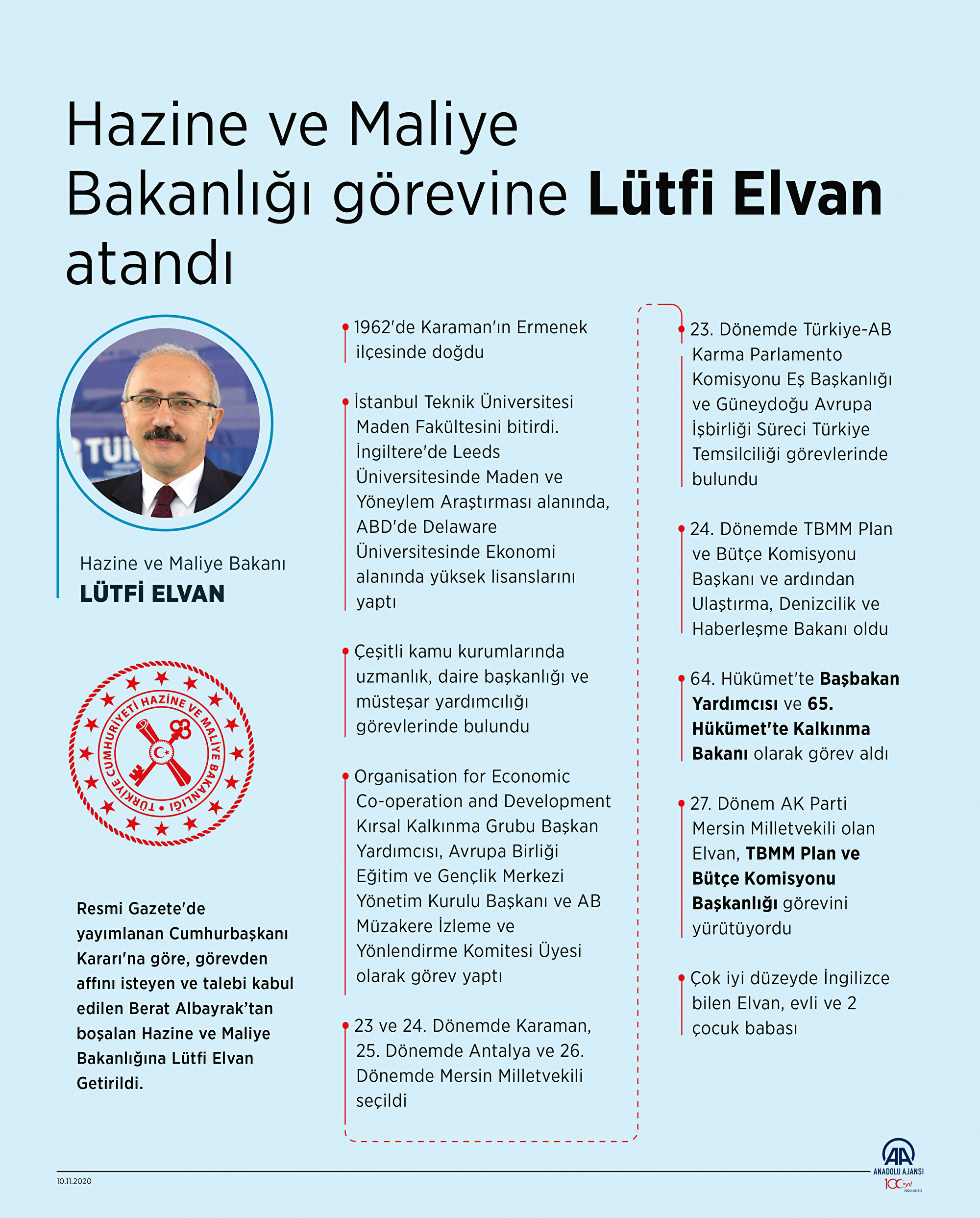 Cumhurbaşkanı Recep Tayyip Erdoğan'ın imzasıyla Resmi Gazete'de yayımlanan son dakika kararına göre görevden affını isteyen ve talebi kabul edilen Hazine ve Maliye Bakanı Berat Albayrak'tan boşalan bakanlık görevine Lütfi Elvan atandı. Bu son dakika haberi sonrasında vatandaşlar yeni bakan ile ilgili detayları öğrenmek amacıyla Lütfi Elvan kimdir, kaç yaşında, nereli? şeklinde sorularla yoğun şekilde araştırmalar yapıyor. Peki, Lütfi Elvan kimdir?