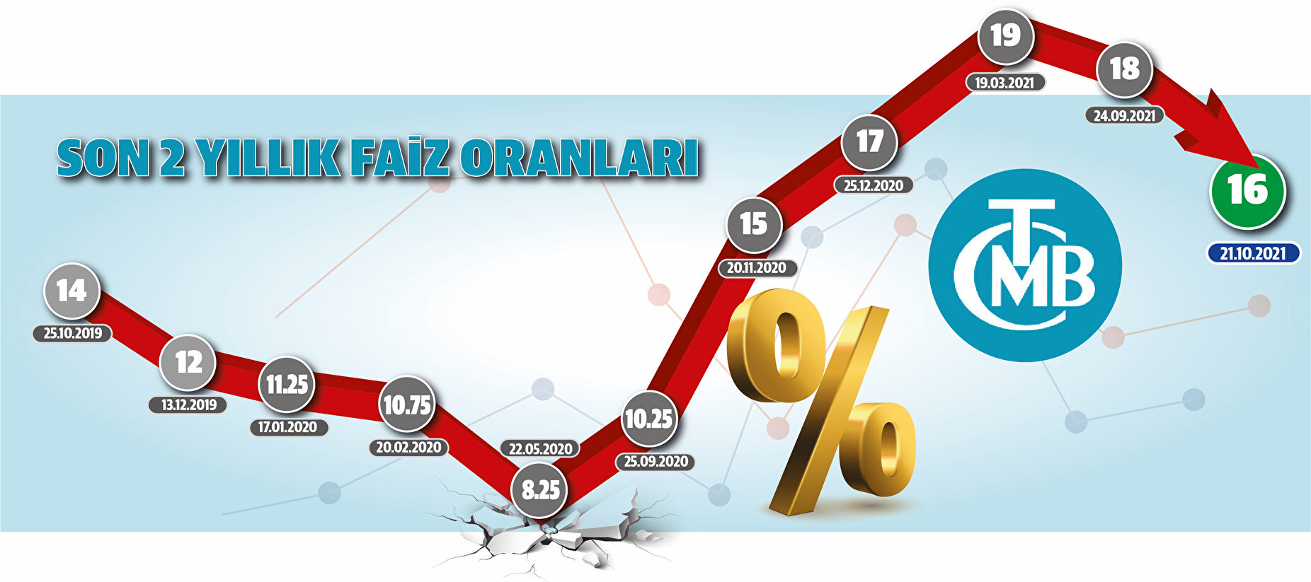 - MB’den faiz oranlarına ilişkin yapılan duyuruda, küresel iktisadi faaliyette yılın ilk yarısında yaşanan toparlanmaya rağmen yakın dönemde açıklanan güven endeksleri ve salgının etkisiyle gerilemeye başladığı belirtildi. Aşılama oranlarındaki artışa rağmen salgında yeni varyantların küresel iktisadi faaliyet üzerindeki aşağı yönlü riskleri canlı tuttuğu ifade edildi.