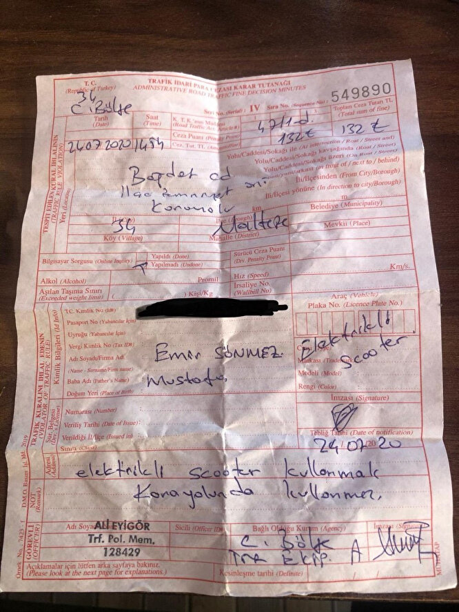 İstanbul Maltepe'de kiraladığı elektrikli scooter ile karayolunu kullanan Emir Sönmez isimli vatandaş trafik ekipleri tarafından durduruldu.