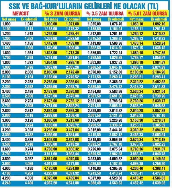 Ocak zammı yüzde 3.5 olursa; net maaş 4 bin 388 liraya,