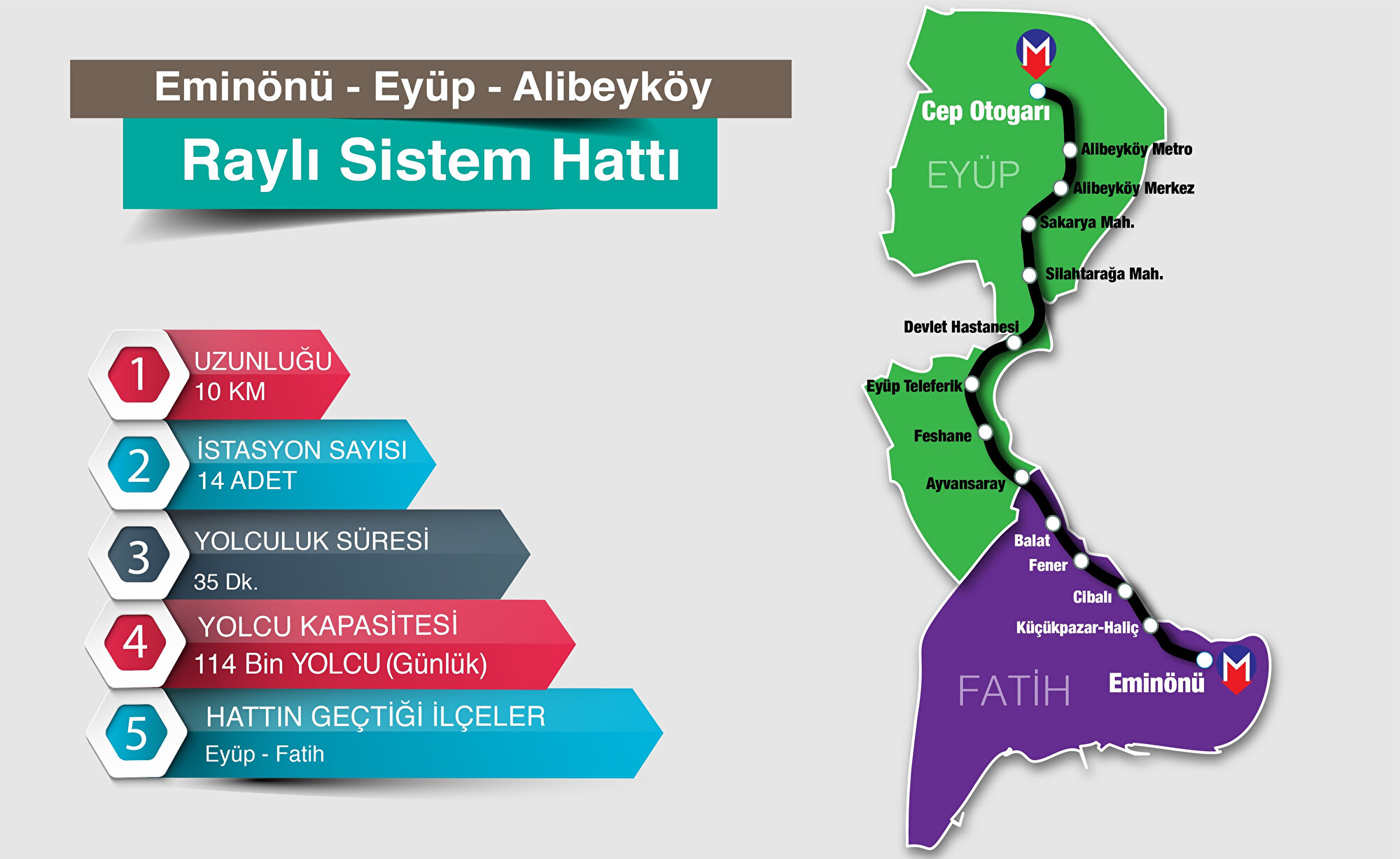 Mavi, yeşil ve tarih ile iç içe yolculuğa ev sahipliği yapacak olan Eminönü Alibeyköy tramvay hattı inşaatında raylar yerleştirilmeye başlandı. Seyahat süresi 35 dakika olan katenersiz 10 kilometrelik tramvay hattında son durum havadan görüntülendi. Eminönü’nden Alibeyköy Cep Otogarı arasında seyahat süresi 35 dakika olacak. Günlük 114 bin yolcuya hizmet verebilecek kapasiteye sahip hatta 30 araç çalışacak.