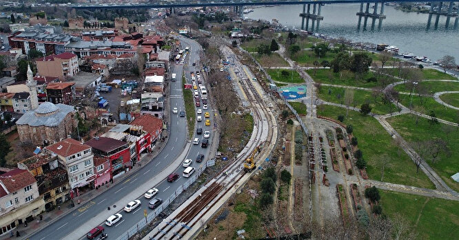 Çekilen görüntülerde tramvay yolu güzergahının yolunun tamamen belli olduğu gözüküyor. İşçilerin ise yeni yerleştirilen rayların kontrollerini yaptığını ve yeni gelen rayları hattın belirlenen kısımlarına yerleştiriyor. Tramvay yolunun bazı kısımlarda kazıklar çakılarak Haliç’te denizin üzerinde seyretmesi planlanıyor. Yeşil, mavi ve tarih ile iç içe olan tramvay hattında 14 adet 60 metre uzunluğunda istasyon yer alacak.