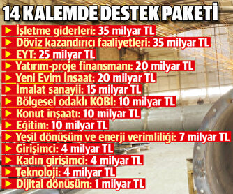 Üretici, ihracatçı, girişimci ve KOBİ’lerin tamamını kapsayan 250 milyar liralık krediyle; yatırım ve büyümenin güçlü bir şekilde sürdürülmesi için kullanılması hedefleniyor. EYT sebebiyle oluşacak kıdem tazminatı yükünü hafifletme isteyen işletmeler de yararlanacak. Yeni Evim kampanyası için de kaynak ayrılan paket 14 ayrı başlık altında belirlenen alanlarda amacına uygun olarak kullandırılacak. Destek ödemeleri fatura karşılığı yapılacak. Amaç dışı kullanım önlenmesi için de bir kara liste uygulaması devreye alınacak.