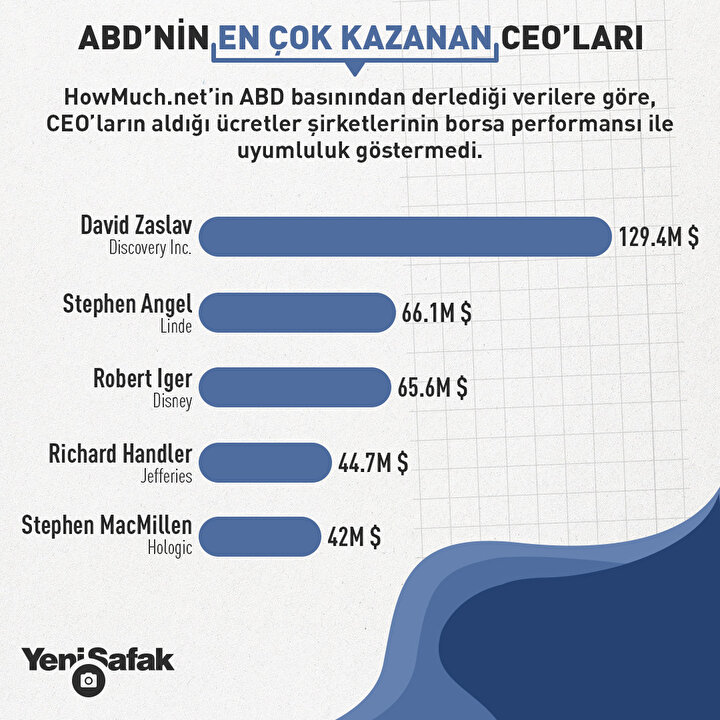 HowMuch.net’in ABD basınından derlediği verilere göre, CEO’ların aldığı ücretler şirketlerinin borsa performansı ile uyumluluk göstermedi.