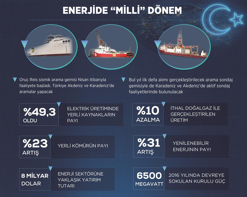 Türkiye’nin gelecek dönemde hem Karadeniz hem de Akdeniz’de petrol ve doğalgaz aramacılık faaliyetlerini yoğunlaştıracağını belirten Albayrak, “Tarihimizde ilk defa bu yıl yeni alımını gerçekleştireceğimiz arama sondaj gemisiyle her yıl Karadeniz’de iki, Akdeniz’de iki olmak üzere denizlerimizde aktif sondaj faaliyetlerinde bulunacağız" dedi.