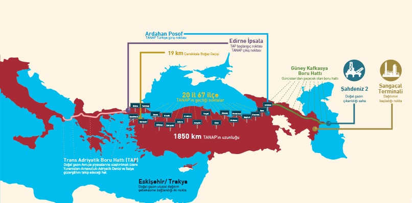 Trans Anadolu Doğal Gaz Boru Hattı Projesi'nin (TANAP) amacı, Azerbaycan’ın Hazar Denizi’ndeki Şah Deniz 2 Gaz Sahası ve Hazar Denizi’nin güneyindeki diğer sahalarda üretilen doğal gazın öncelikle Türkiye’ye, ardından Avrupa’ya taşınmasıdır.