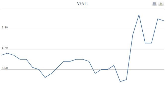 Açıklama öncesi yüzde 2.6 yükselişle 8.57 liradan işlem gören Vestel Elektronik hisseleri, açıklamanın ardından yüzde 7 primle 8.94 liraya kadar yükseldi.