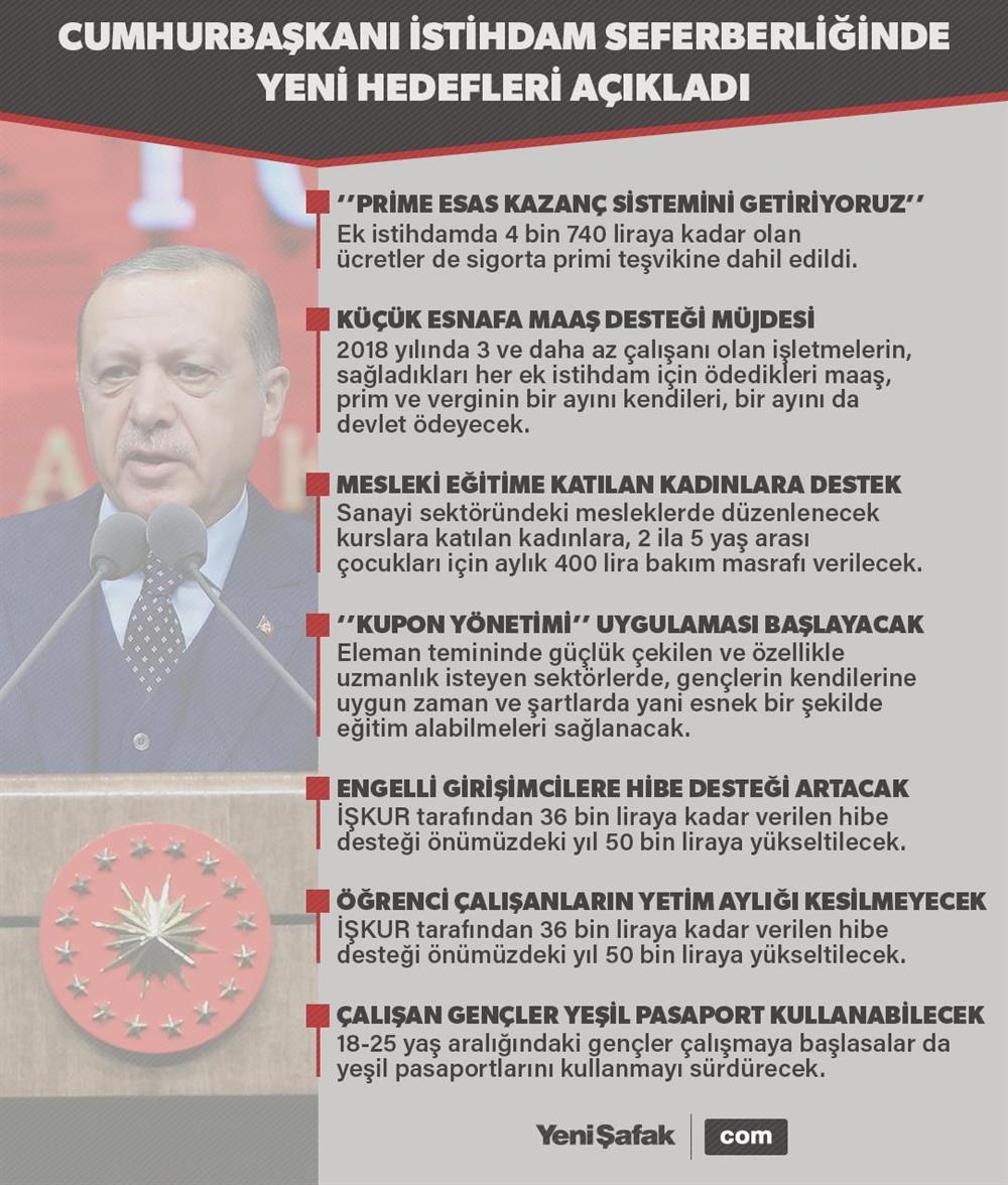 Cumhurbaşkanı Erdoğan Beştepe'de düzenlenen İstihdam Şurası'nda iş dünyası ve çalışma hayatına yönelik getirilecek yeni teşvik ve reformları açıkladı.