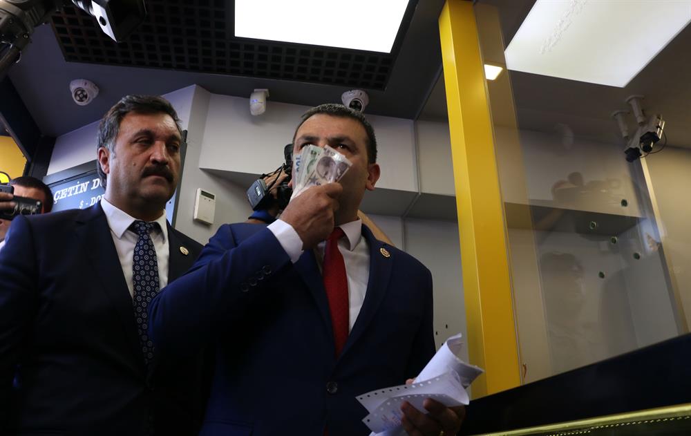 Cumhurbaşkanı Recep Tayyip Erdoğan'ın, dün, Trabzon'da yaptığı konuşmada, "Sanayicilerimize sesleniyorum; bankalara saldırarak, oralardan döviz alma yoluna gitmeyin. Bu milleti diri tutmak, ayakta tutmak sadece bizim görevimiz değildir. Sanayicinin de görevidir, tüccarın da görevidir" şeklindeki çağrısına uyan TÜMKİAD üyesi bir grup, 3 milyon doları bir bankada bozdurarak Türk Lirasına çevirdi.