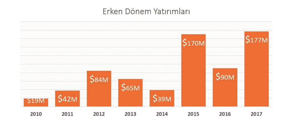 Start-up’lara artan ilgi sayesinde Türkiye, geçen yıl Avrupa erken yatırım sıralamasında birinci lige çıktı. Bu alana yapılan yatırımlar, 2017’de önceki seneye göre yüzde 102 yükselerek 177 milyon dolar gibi rekor seviyeye ulaştı.