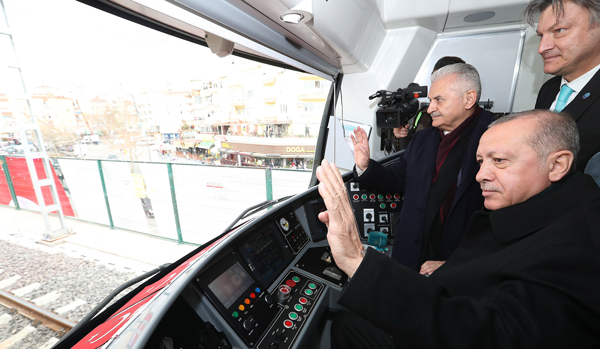 Gebze - Halkalı Marmaray hattı açıldı. Günde 1 milyon yolcunun taşınması planlanan hattın açılışında Başkan Recep Tayyip Erdoğan açıklamalarda bulundu. Londra'dan Pekin'e kadar Avrupa ve Asya'yı birbirine bağlayacak dev projenin en önemli ayağı olan Gebze - Halkalı Marmaray hattının günde 1 milyon 700 bin yolcu taşıyacağını açıklayan Erdoğan, trenin ilk seferinde de makinist koltuğuna oturdu.